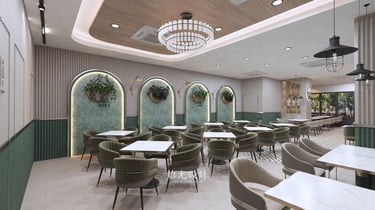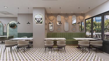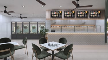 Designed for a growing nasi lemak chain, the space reflects its rising popularity and strong brand identity. A teal-toned palette sets the mood, paired with subtle vintage details for warmth and familiarity. Clean layouts and bold colour accents create a dining environment that feels both nostalgic and current.
