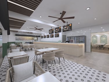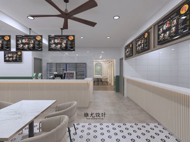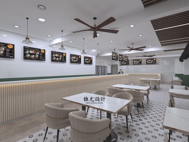 Designed for a growing nasi lemak chain, the space reflects its rising popularity and strong brand identity. A teal-toned palette sets the mood, paired with subtle vintage details for warmth and familiarity. Clean layouts and bold colour accents create a dining environment that feels both nostalgic and current.